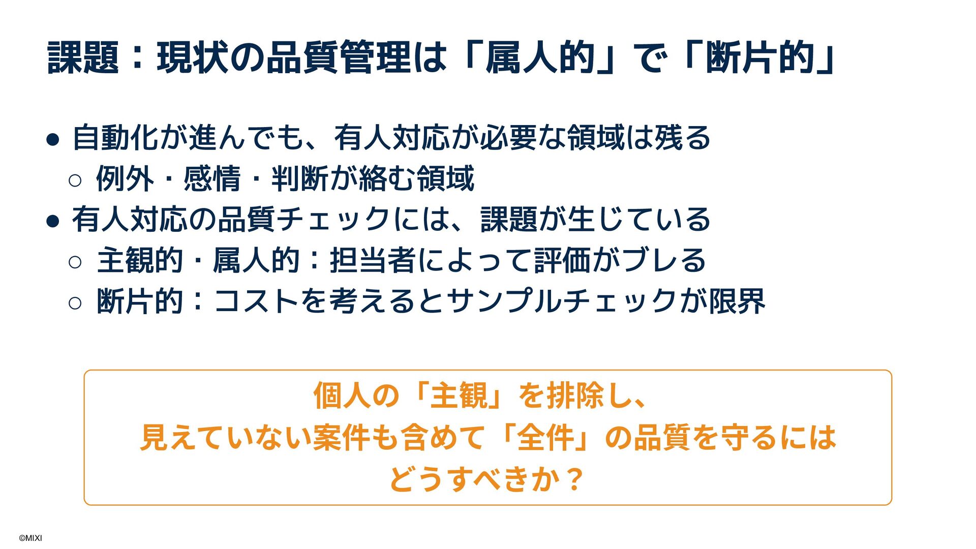 多様で単純なルールが通用しないケースに対し、評価軸設計とプロンプト調整でブレを抑え、良し悪しを同じ物差しで残す具体策を共有します。