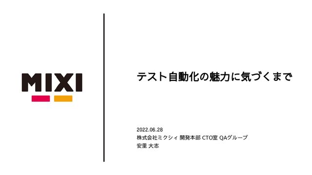 【テクバン×ミクシィ×AIQVE ONE】3社共催!テスト自動化事例LT会 https://tech-quality.connpass.com/event/250002/ にてお話した安里による発表資料です。