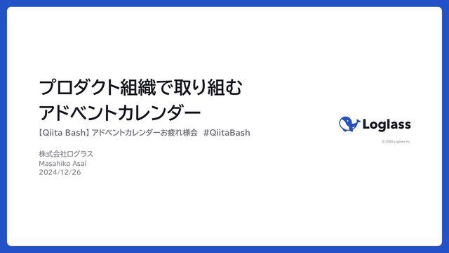 2024/12/26開催「【Qiita Bash】アドベントカレンダーお疲れ様会」でライトニングトークで登壇した資料となります。 プロダクト組織全体・皆さんでアドベントカレンダーを取り組むための工夫についてお話しました。