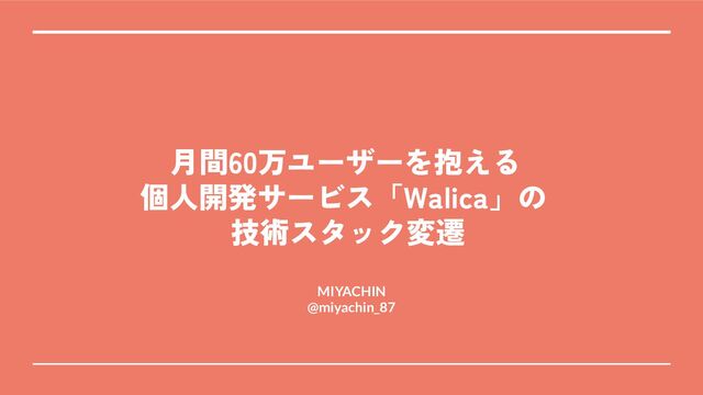 月間60万ユーザーを抱える 個人開発サービス「Walica」の 技術スタック変遷 MIYACHIN @miyachin_87