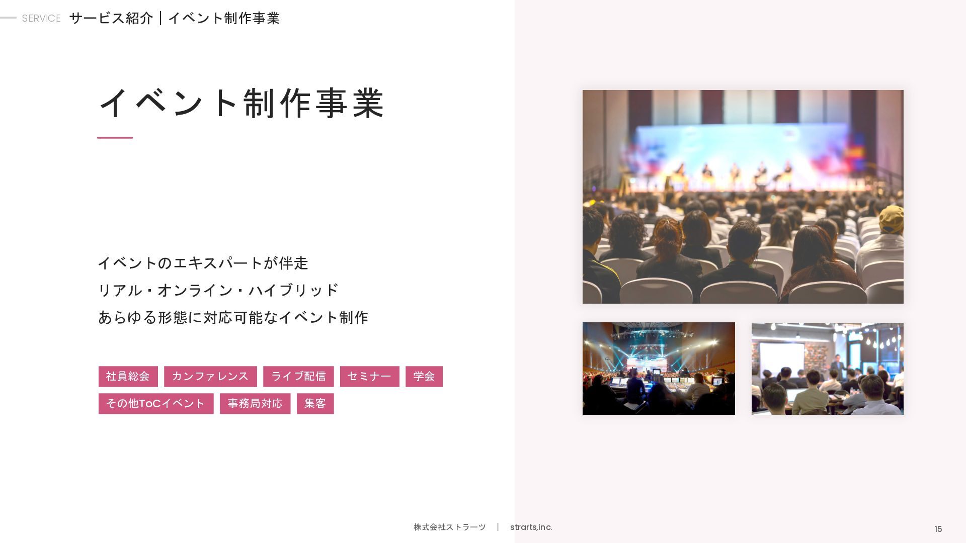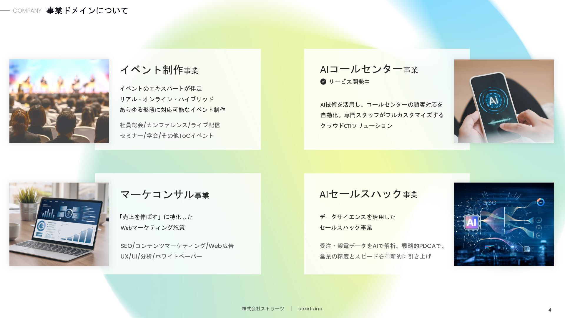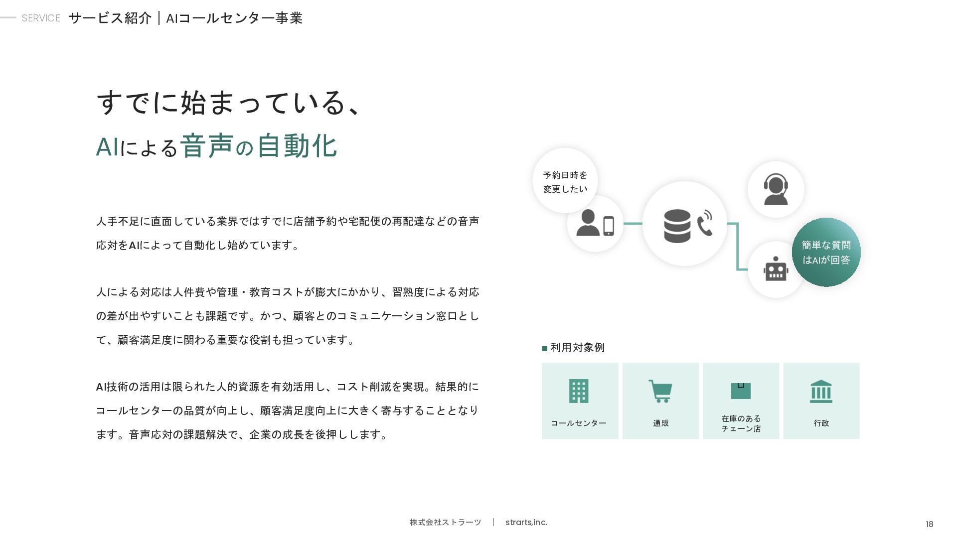 堀江 和敬 エンジニア/ AIコールセンター事業部 高専卒。株式会社クロスビットやイタンジ株式会社 などで、SaaSサービスのバックエンド/ フロントエンド開発に従事。 外村 暢康 AIエンジニア/ AIコールセンター事業部 大阪大学卒。サイバーエージェントのAI LabにてAI分 野の研究開発に従事。AI開発歴10年近くあるスペ シャリスト。 大平 義輝 エンジニア/AIコールセンター事業部 青山学院大学卒。弁護士ドットコムにてバックエン ド開発に従事。AWS、API連携、AIと電話の接続部分 など幅広い開発を担当。 木村 俊介 執行役員/イベント事業本部長 九州大学卒。株式会社電通でオリンピックのメイン プランナーを担当。その後、上場人材会社にて、大 規模イベントの企画や運営に従事。 宮原 幸平