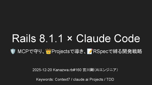 こんにちは。宮川です。 今日は、話題の『Claude Code』の話をします。 彼は優秀ですが、放っておくとたまに暴走します。 そこで私は、彼を単なるコーディングツールとしてではなく、**『組織』**として扱うことにしました。 MCPでセキュリティを守らせ、 Web版Projects機能で全体を指揮・誘導し、 RSpecで仕様を縛る。 AIを『賢い部下』にするための、私の現実的な泥臭いハックをご紹介します。