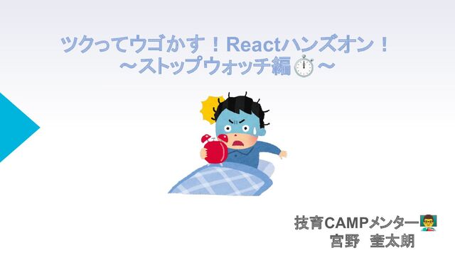 ツクってウゴかす!Reactハンズオン! 〜ストップウォッチ編⏱〜 技育CAMPメンター 宮野 奎太朗