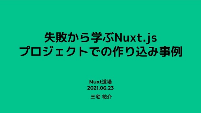 失敗から学ぶNuxt.js プロジェクトでの作り込み事例 Nuxt道場 2021.06.23 三宅 祐介