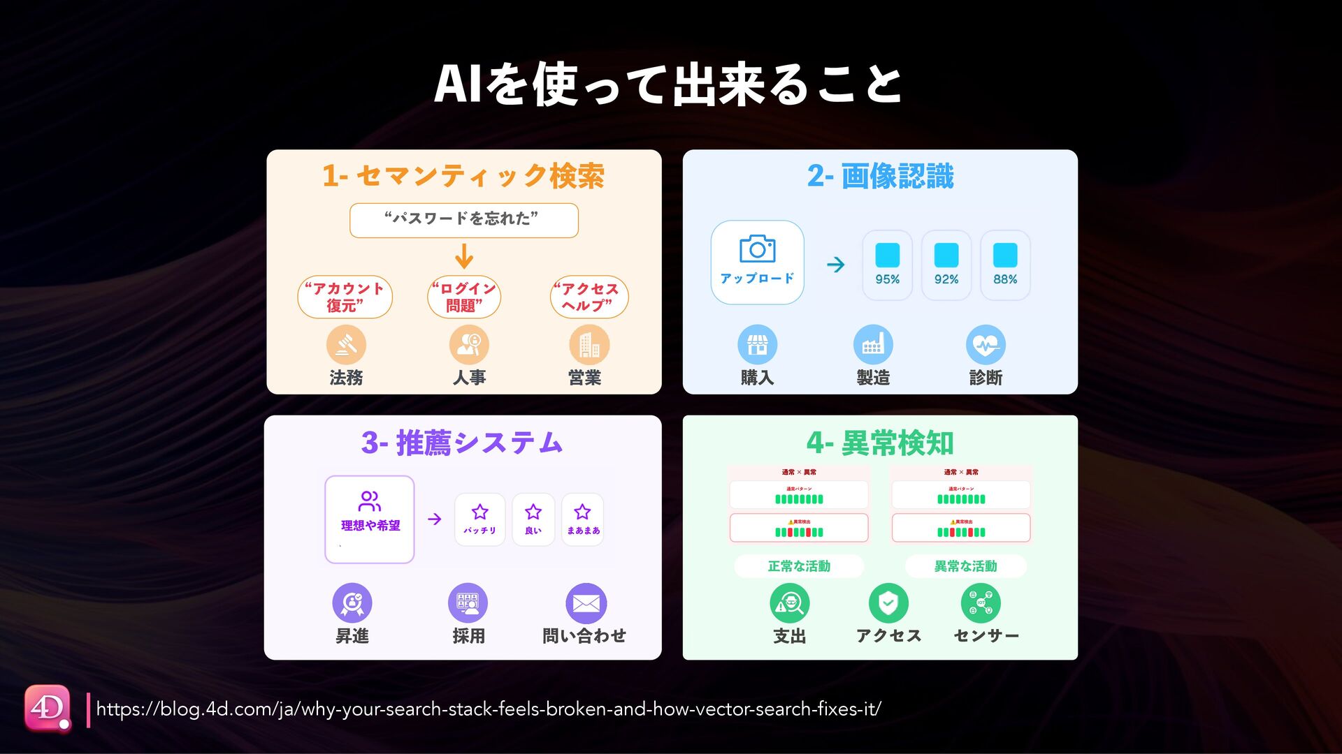 to enhance functionality, automate tasks, and deliver intelligent features Discover AI in 4D - Mathieu Ferry %JTDPWFS"*JO% ϚςɾϑΣϦʔ ࡞ۀޮΛΞοϓ͢ΔͨΊ %ΞϓϦέʔγϣϯʹ"* ΛऔΓࠐΜͰ׆༻͢Δํ๏ Λशಘ͠·͠ΐ͏ɻ
