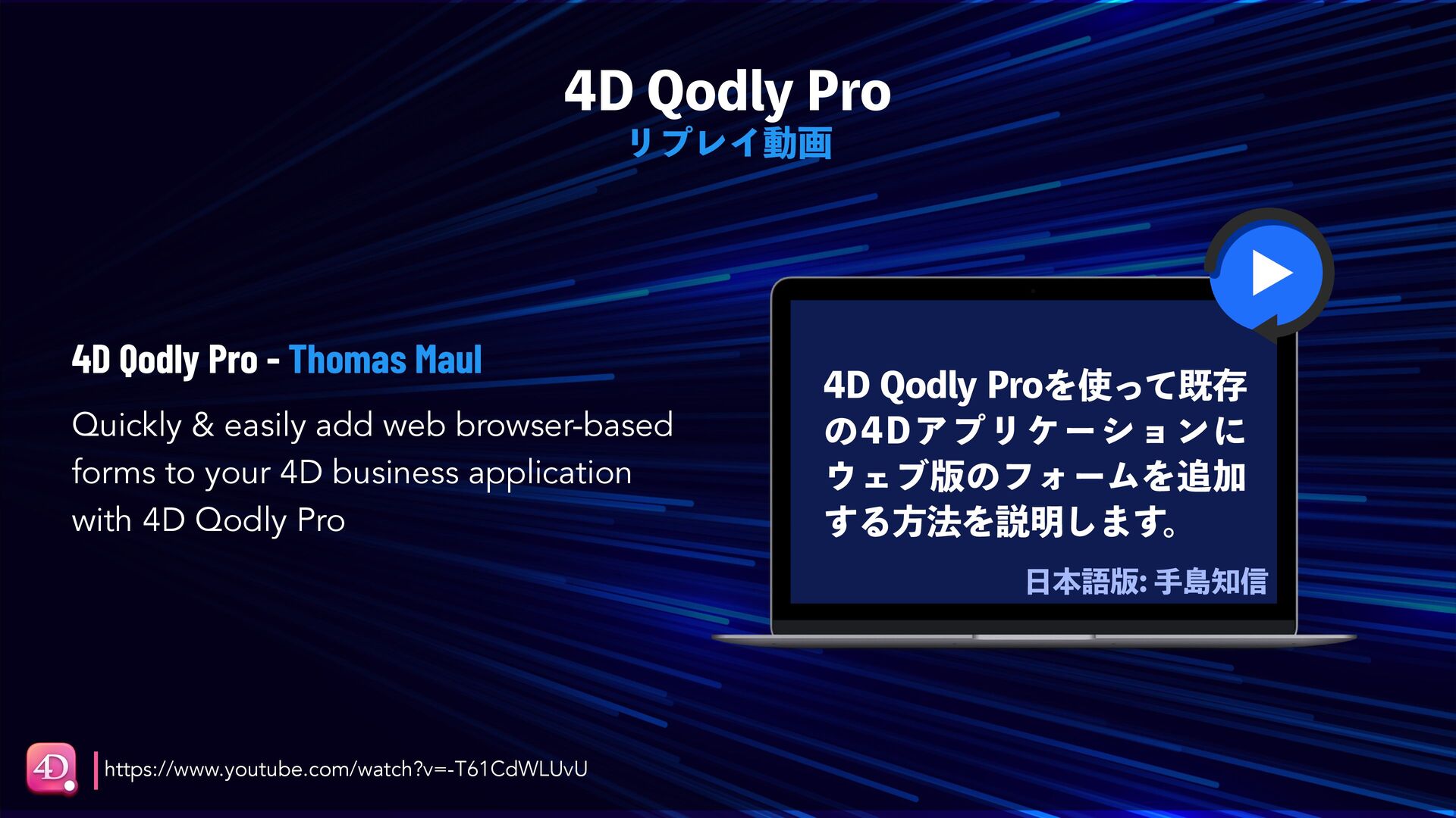 4D business application with 4D Qodly Pro 4D Qodly Pro - Thomas Maul ϦϓϨΠಈը https://www.youtube.com/watch?v=-T61CdWLUvU ຊޠ൛खౡ৴ %2PEMZ1SPΛͬͯطଘ ͷ%ΞϓϦέʔγϣϯʹ Σϒ൛ͷϑΥʔϜΛՃ ͢Δํ๏Λઆ໌͠·͢ɻ