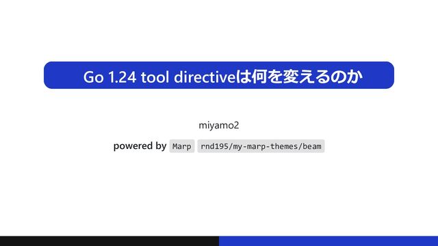 tool directive由来の依存関係はパッケージ配布時に 引き連れなくて済むらしい https://zenn.dev/comsize_press/articles/2f0fdd5390aa20 GitHub - miyamo2/go1-24-tool-directive: playground playground. Contribute to miyamo2/go1-24-tool-directive development by creating an account on GitHub. https://github.com/miyamo2/go1-24-tool-directive 参考