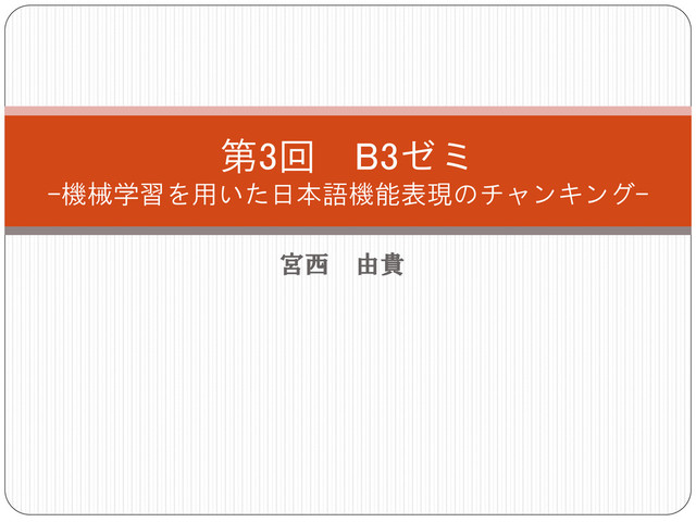 宮西 由貴 第3回 B3ゼミ -機械学習を用いた日本語機能表現のチャンキング-