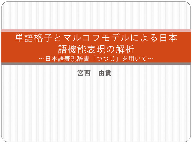 宮西 由貴 単語格子とマルコフモデルによる日本 語機能表現の解析 ~日本語表現辞書「つつじ」を用いて~