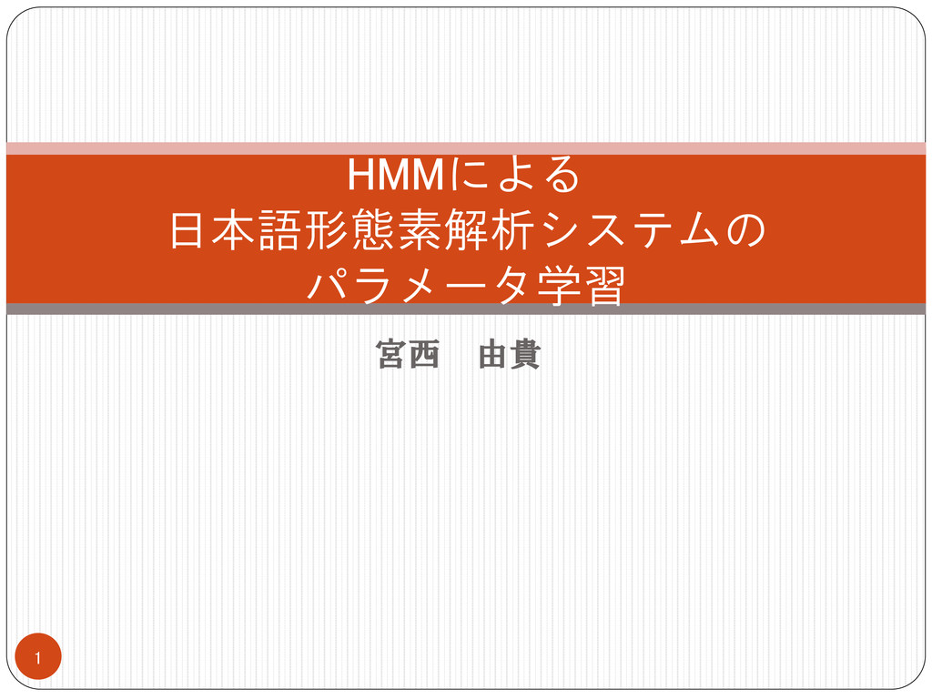 宮西 由貴 HMMによる 日本語形態素解析システムの パラメータ学習 1