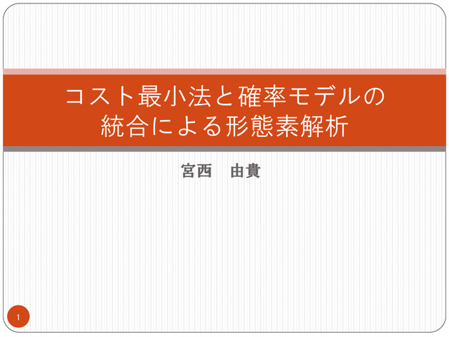宮西 由貴 コスト最小法と確率モデルの 統合による形態素解析 1