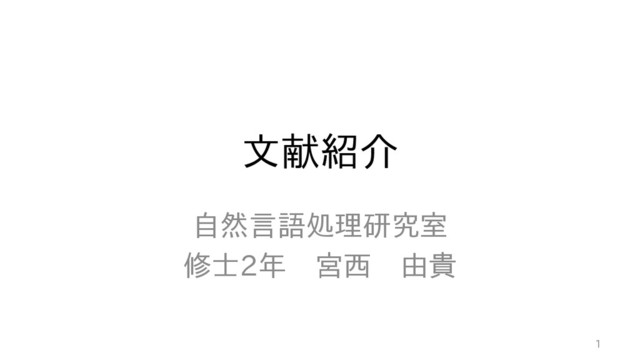 文献紹介 自然言語処理研究室 修士2年 宮西 由貴 1