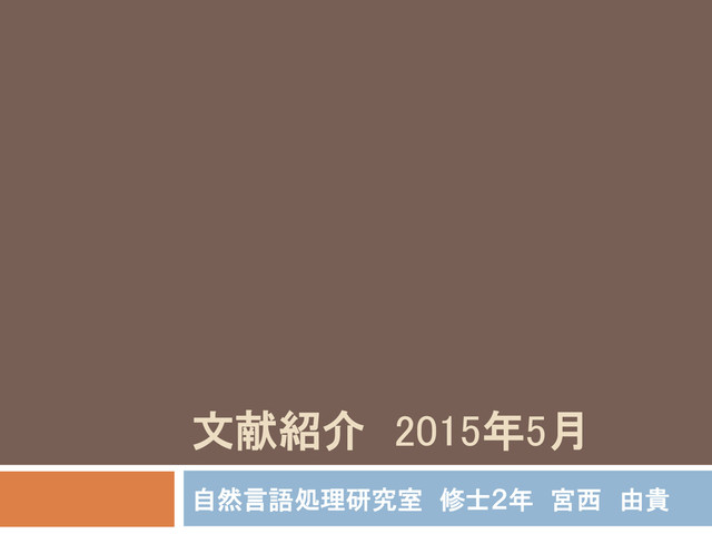 文献紹介 2015年5月 自然言語処理研究室 修士2年 宮西 由貴