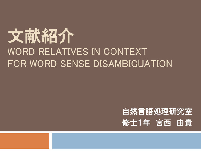 文献紹介 WORD RELATIVES IN CONTEXT FOR WORD SENSE DISAMBIGUATION 自然言語処理研究室