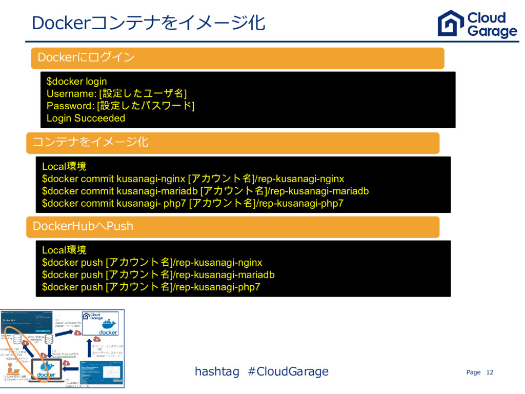 Page 6 hashtag #CloudGarage Docker Hub準備