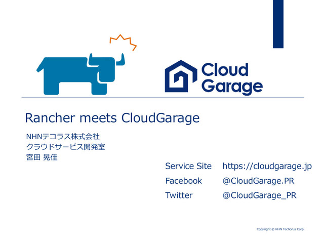 Copyright © NHN Techorus Corp. NHNテコラス株式会社 クラウドサービス開発室 宮田 晃佳 Rancher