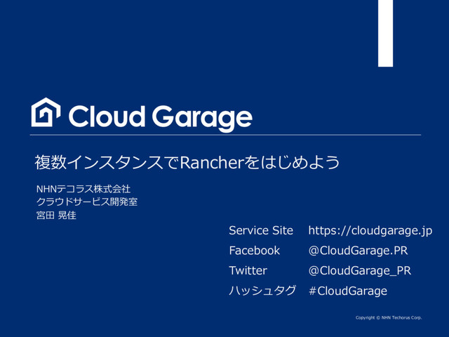 systemctl start mysql MariaDB Galera Clusterにログインし、構成を確認します # mysql -u root -h 127.0.0.1 –p # show status like 'wsrep_%' Instahce01 Instance02 Instance03 Instahce01 Instance02 Instance03 Instahce01 Instance02 Instance03 wsrep_local_state_commentがSyncedになっていること wsrep_incoming_addressesに対象インスタンスのノードアドレスが⼊っていること Rancher Server⽤のアカウントとDBを準備します # CREATE DATABASE IF NOT EXISTS cattle COLLATE = 'utf8_general_ci‘ ¥ CHARACTER SET = 'utf8'; # GRANT ALL ON cattle.* TO 'cattle'@'%' IDENTIFIED BY 'cattle'; Instahce01 Instance02 Instance03