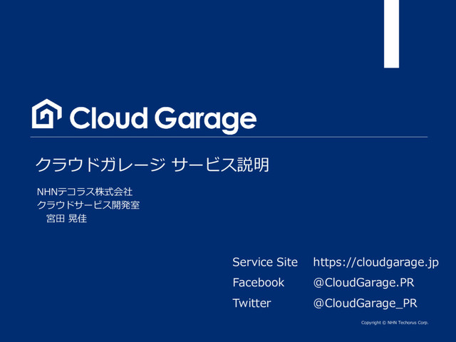 Copyright © NHN Techorus Corp. NHNテコラス株式会社 クラウドサービス開発室 宮田 晃佳 クラウドガレージ