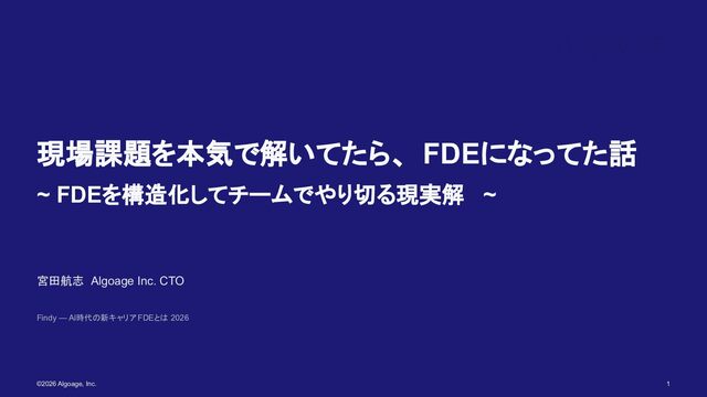 AI時代の新キャリア FDEとは 2026 ©2026 Algoage, Inc. 1