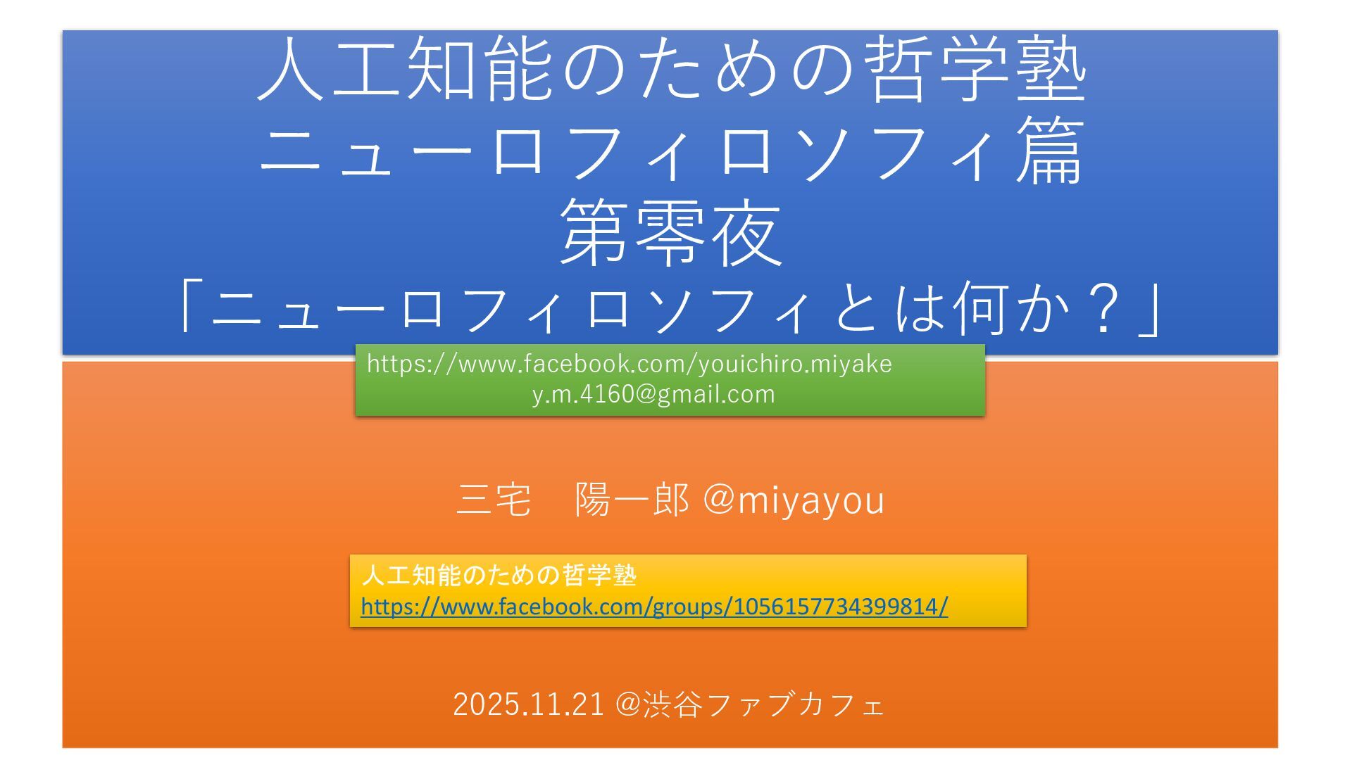 人工知能のための哲学塾 第四期 ニューロフィロソフィ編 第零夜(11/21)