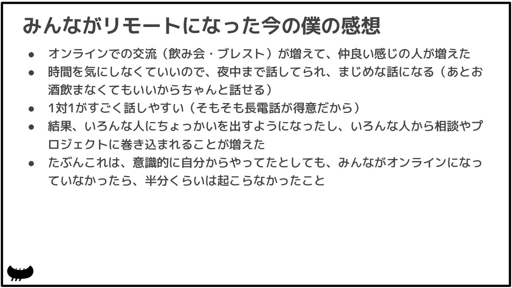 今回は、リモートワークにおける課題と、人事として何をしていけばいいのかを話していきたいと思っています。