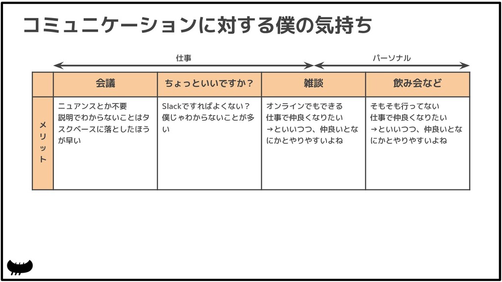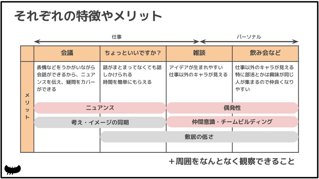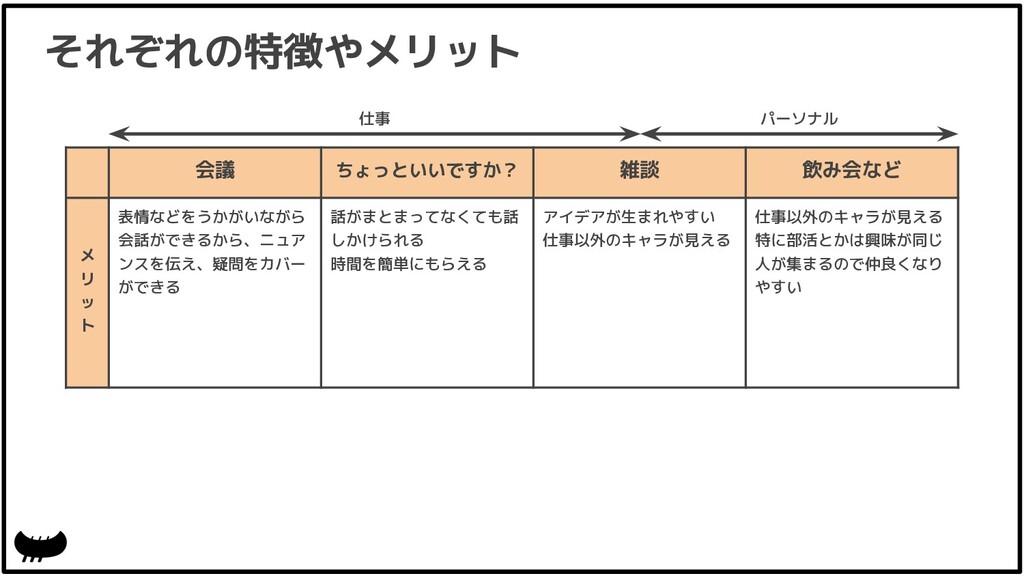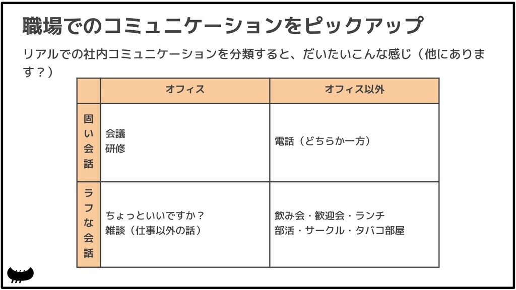 ・リアルのとき、職場でのコミュニケーションにはどんなものがあり、それぞれのメリット・効果はなんだったのか?
