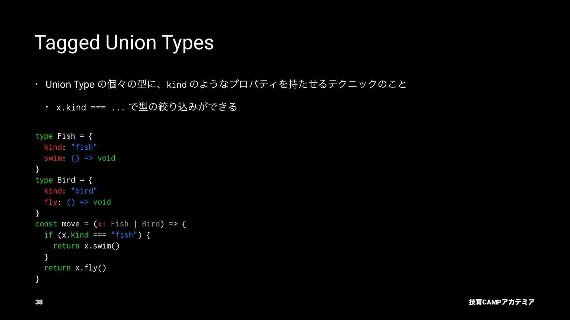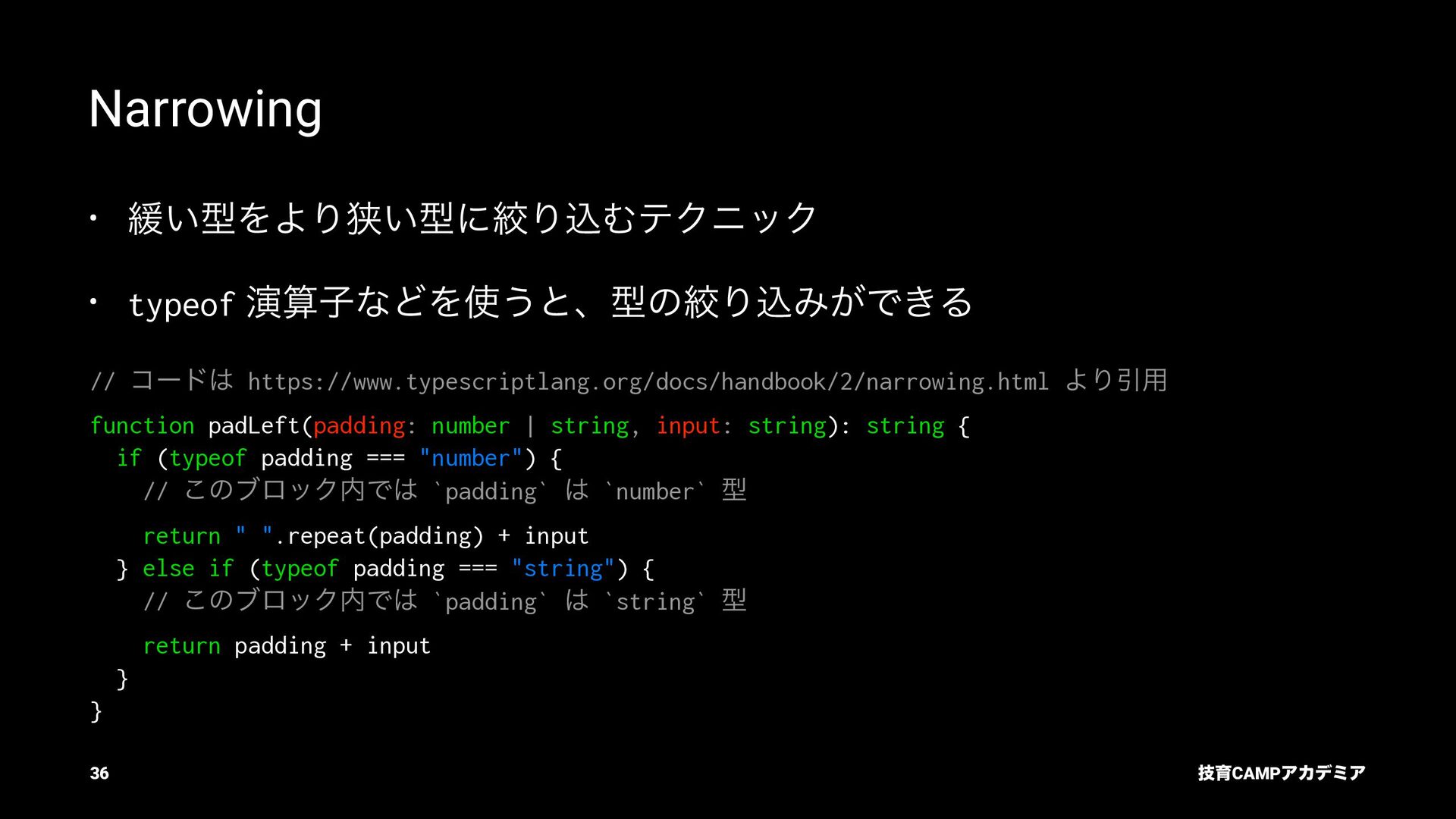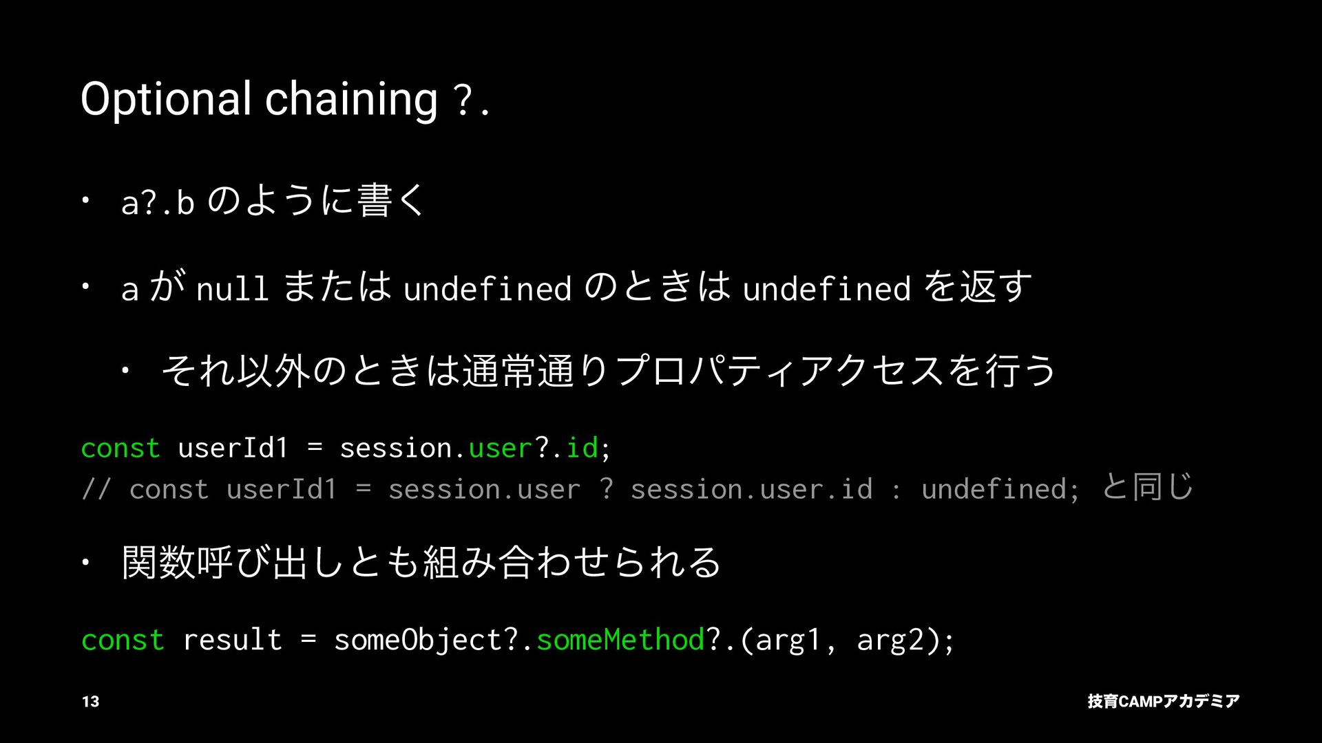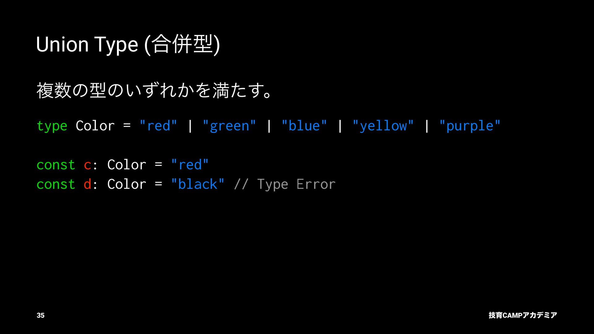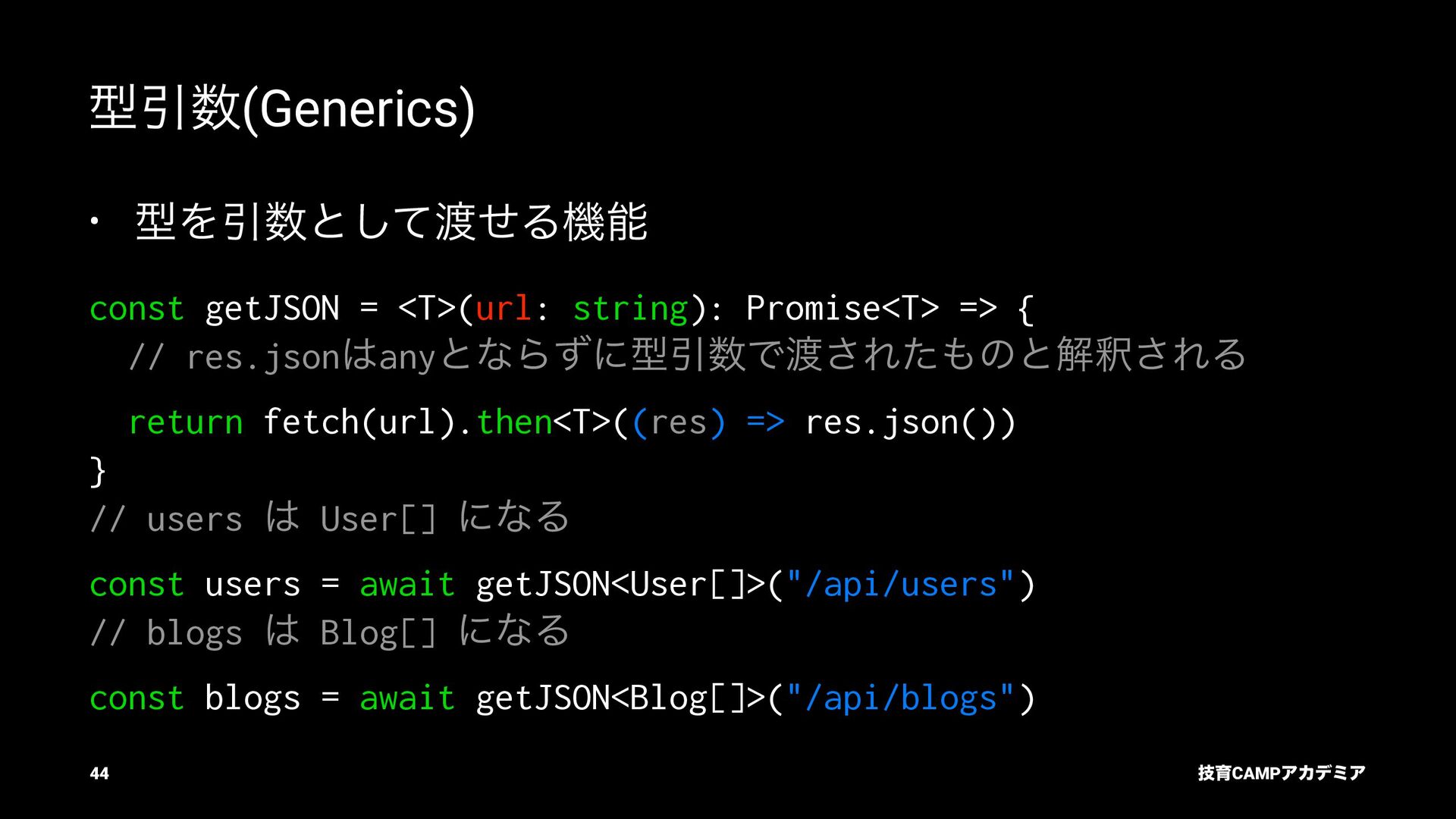 ίϯύΠϥ (tsc) ͰܕνΣοΫΛߦ͏ • ݱͰੜͷ JavaScript ॻ͘ΑΓɺTypeScript Ͱॻ͘͜ͱ͕ଟ͍ function hello(name: string): string { return `Hello, ${name}!` } const result = hello(1) // ^ // Type Error: Argument of type '1' is not assignable to parameter of type 'string'. ٕҭCAMPΞΧσϛΞ 26
