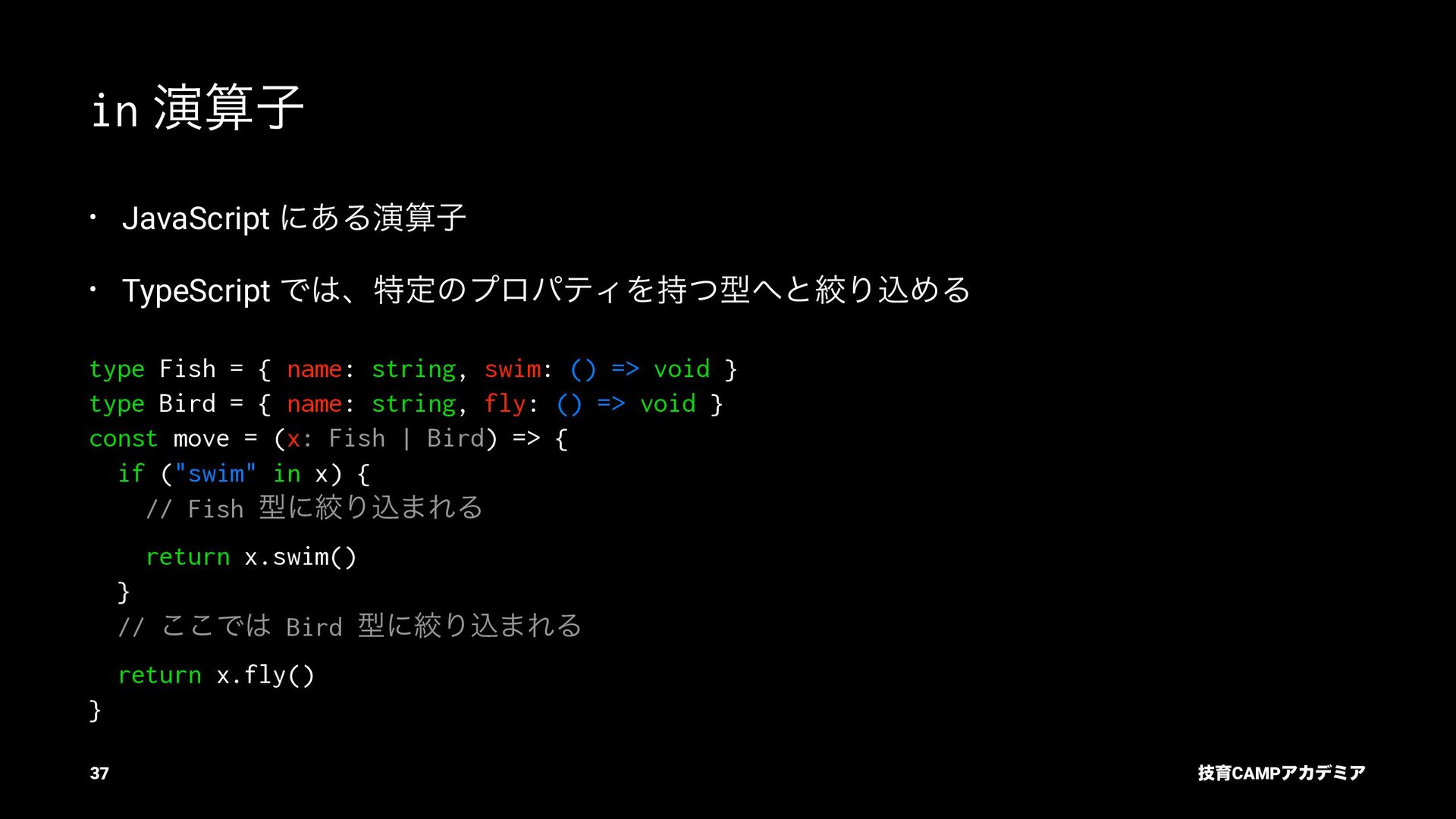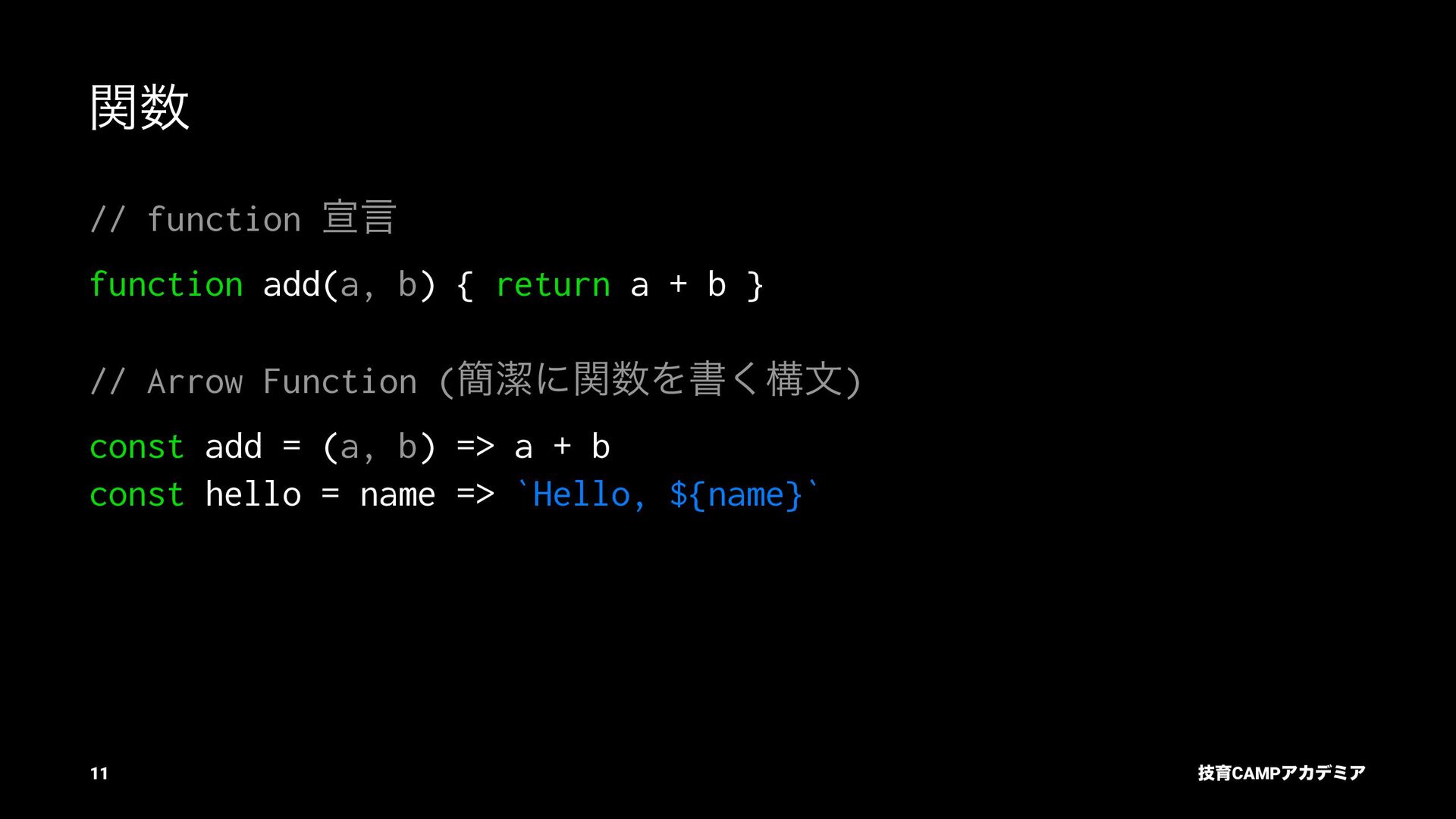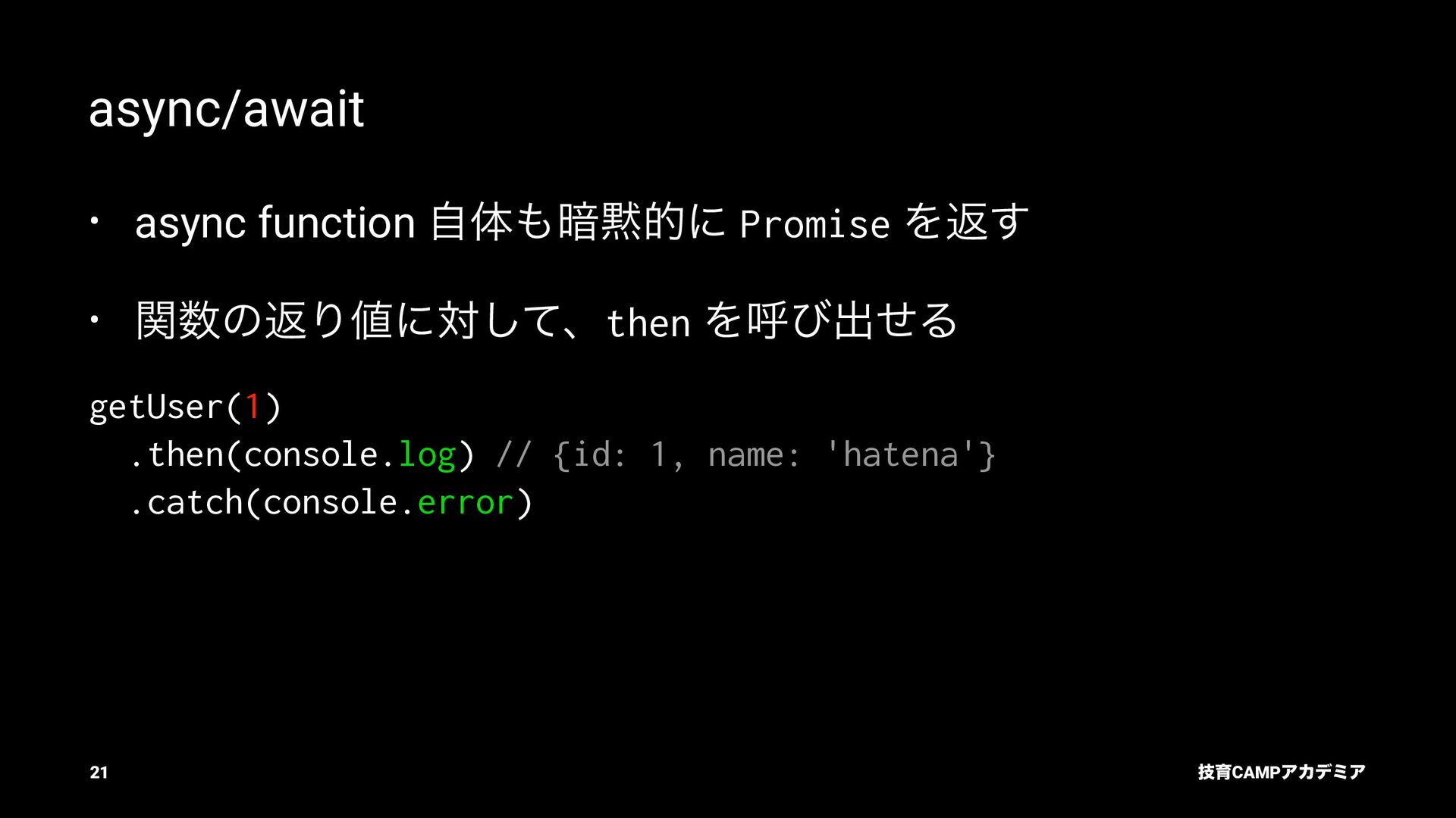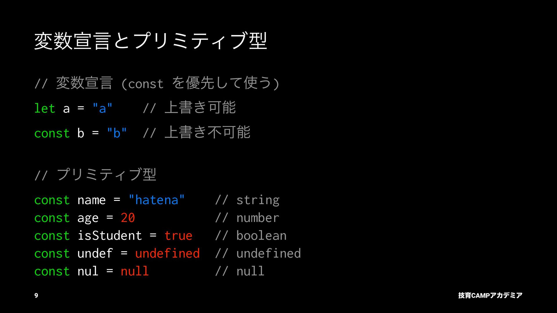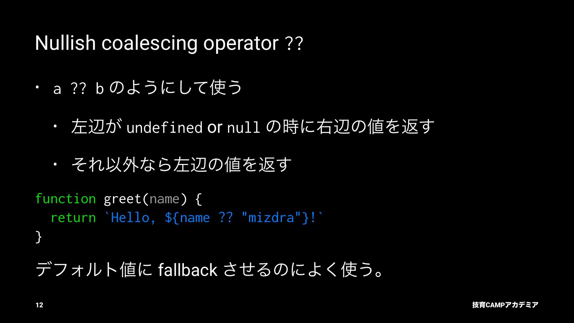 ίϯύΠϥ (tsc) ͰܕνΣοΫΛߦ͏ • ݱͰੜͷ JavaScript ॻ͘ΑΓɺTypeScript Ͱॻ͘͜ͱ͕ଟ͍ function hello(name: string): string { return `Hello, ${name}!` } const result = hello(1) // ^ // Type Error: Argument of type '1' is not assignable to parameter of type 'string'. ٕҭCAMPΞΧσϛΞ 26