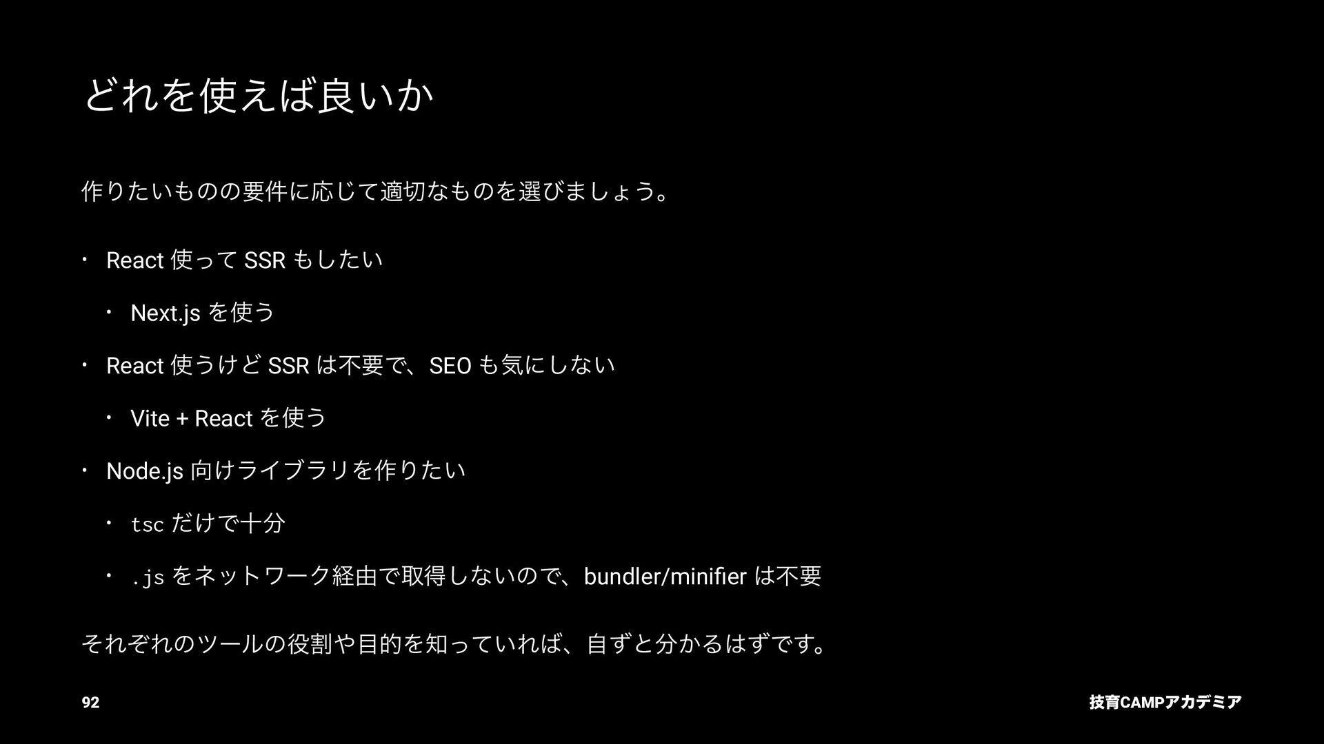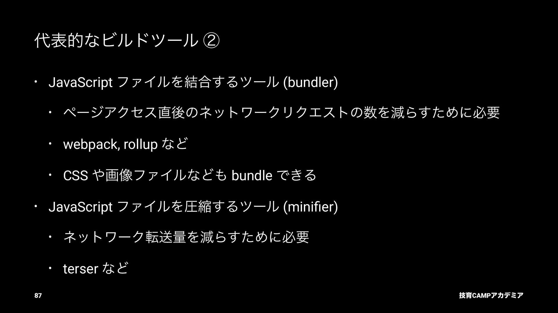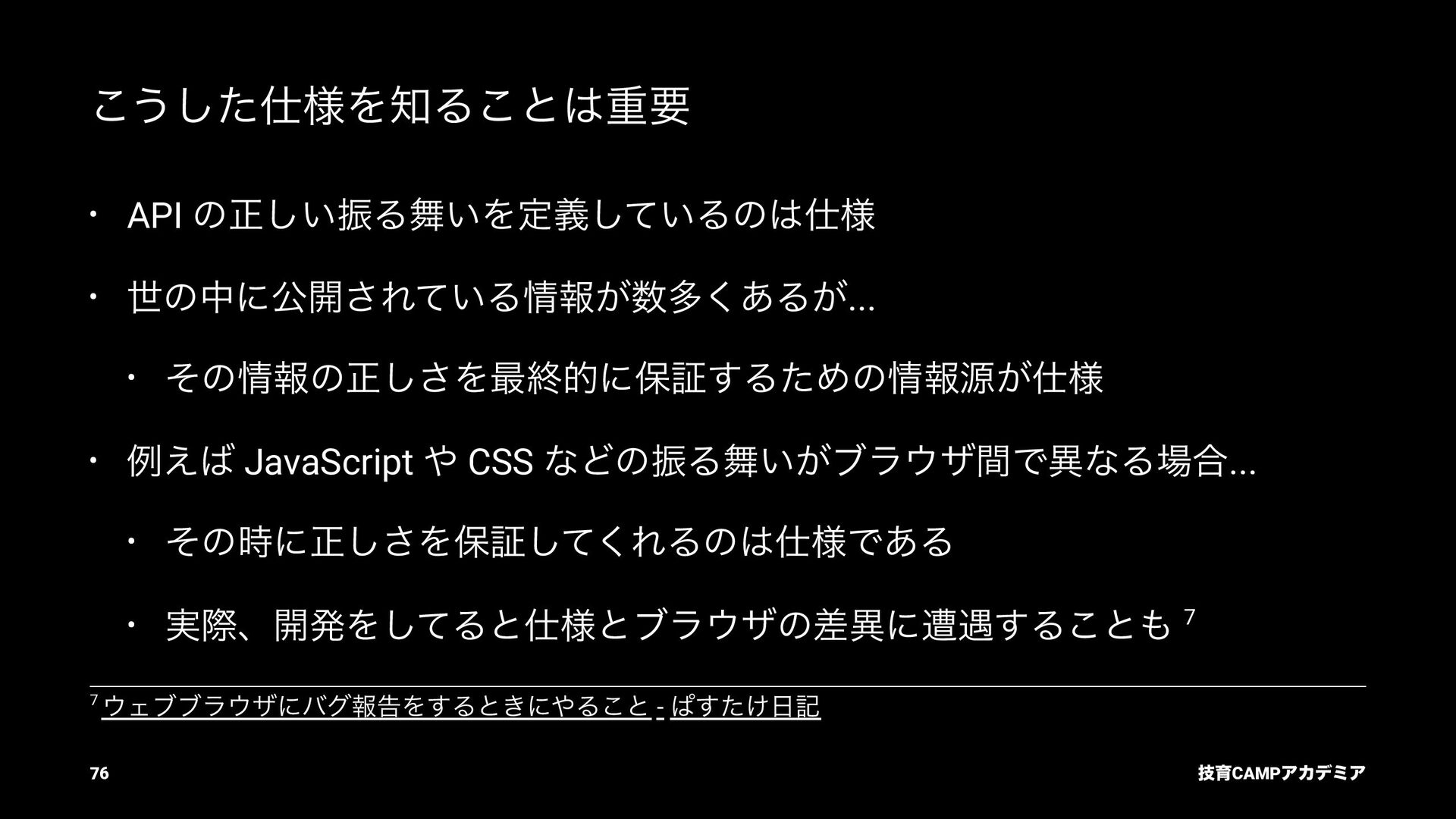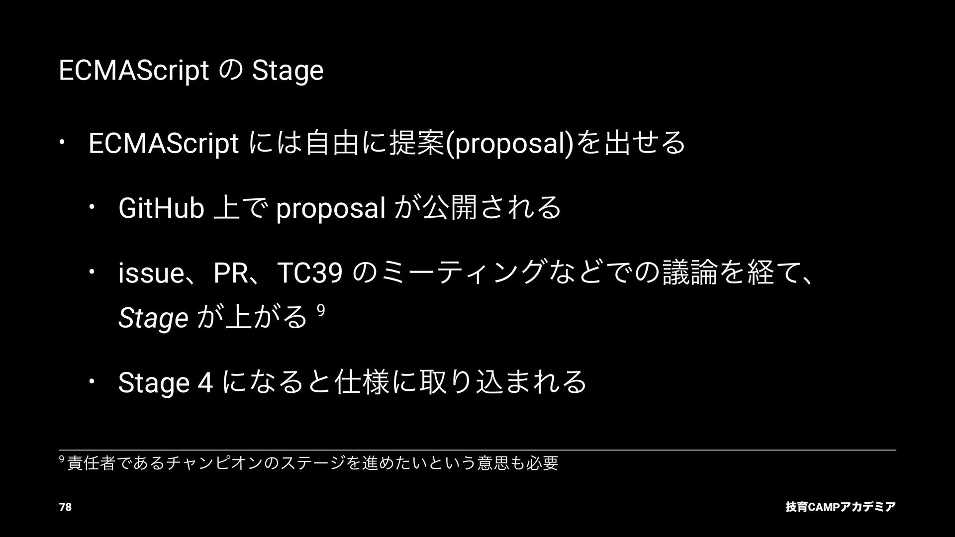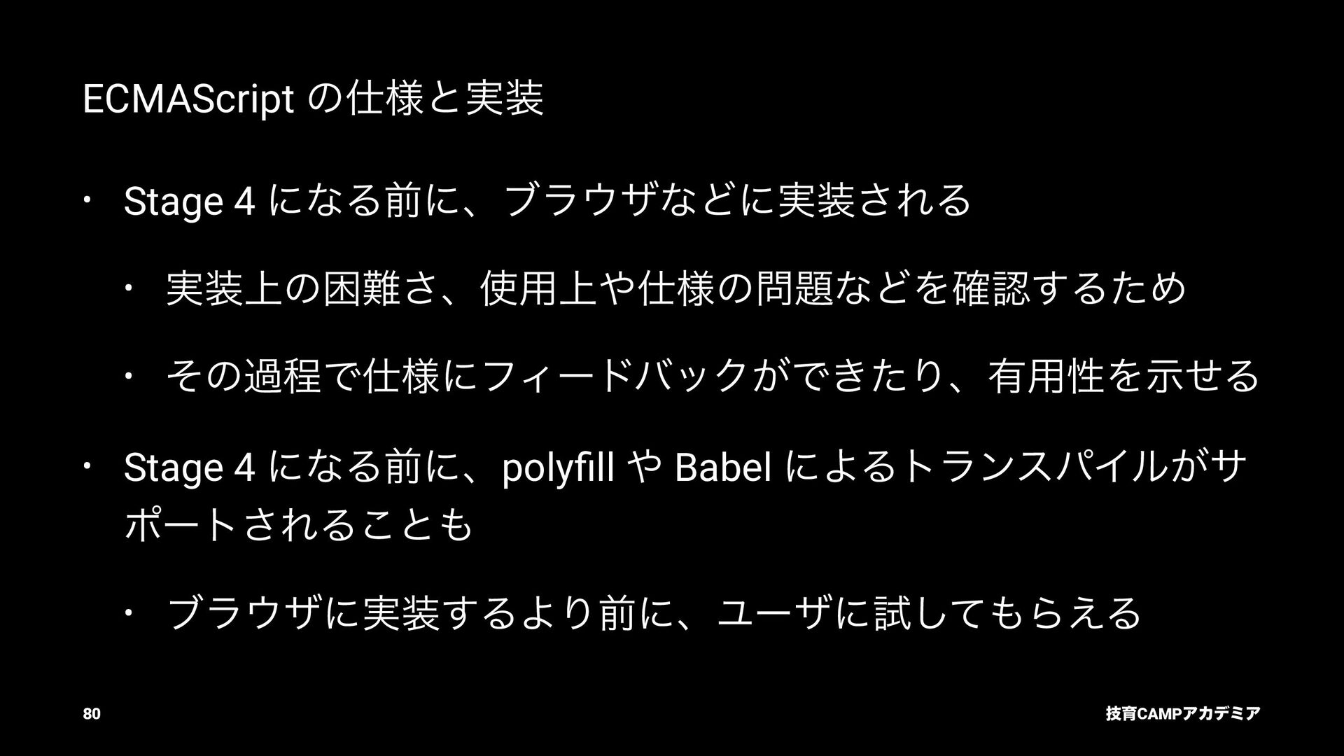 (TC39) JavaScript ͷߏจجຊతͳ API DOM Living Standard (WHATWG) document.querySelector ͳͲͷ DOM API Fetch Living Standard (WHATWG) fetch API Internationalization API (TC39) Intl.DateTimeFormat ͳͲͷࠃࡍԽ API ٕҭCAMPΞΧσϛΞ 82