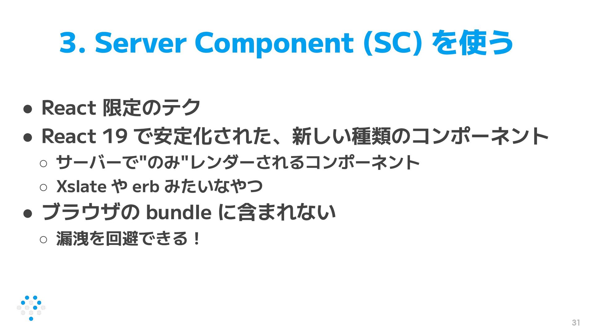31 3. Server Component (SC) を使う • React 限定のテク •