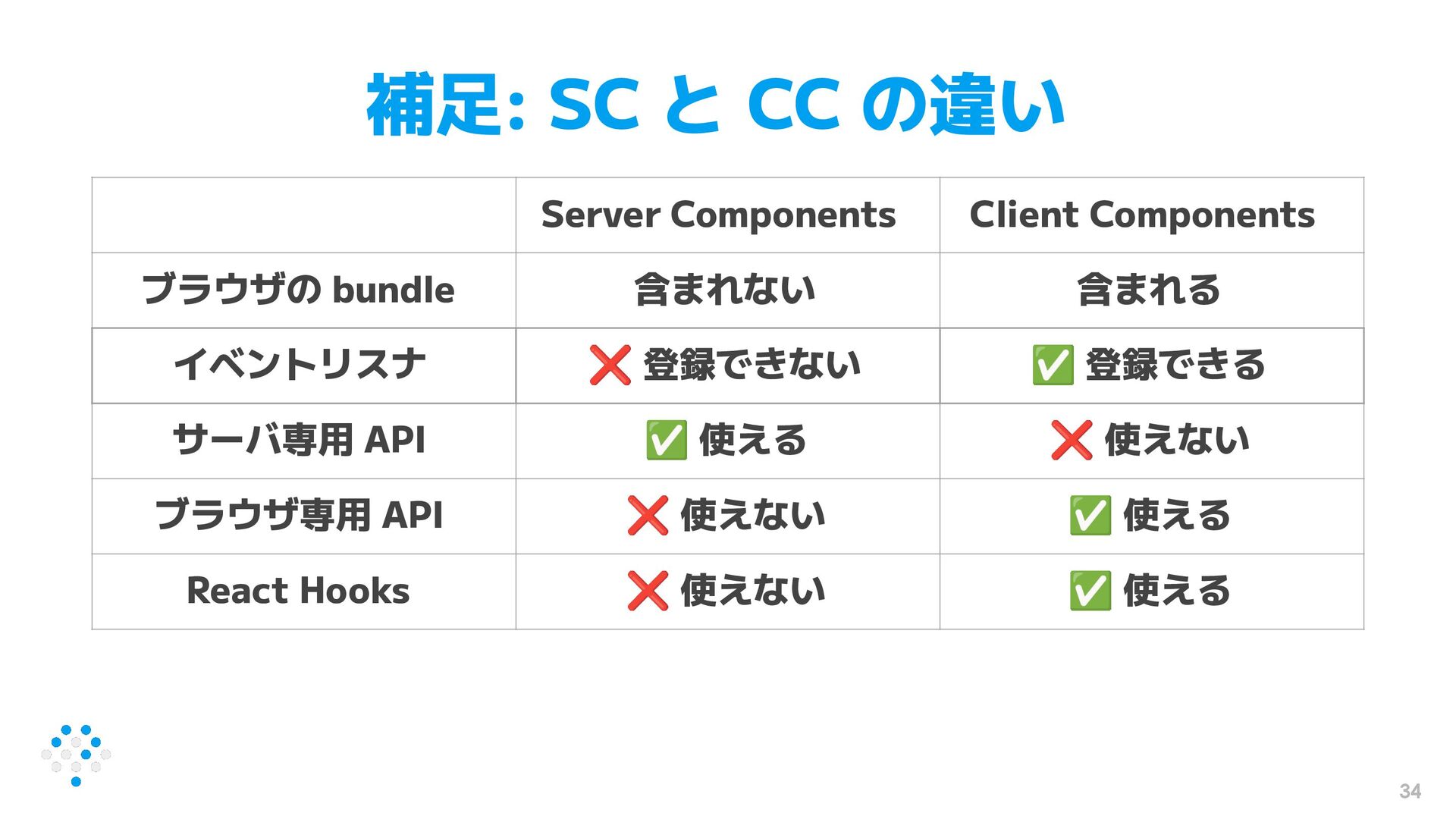 補足: SC と CC の違い 34 Server Components Client Components