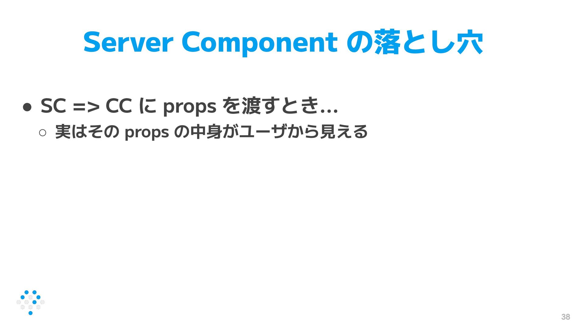 38 Server Component の落とし穴 • SC => CC に props