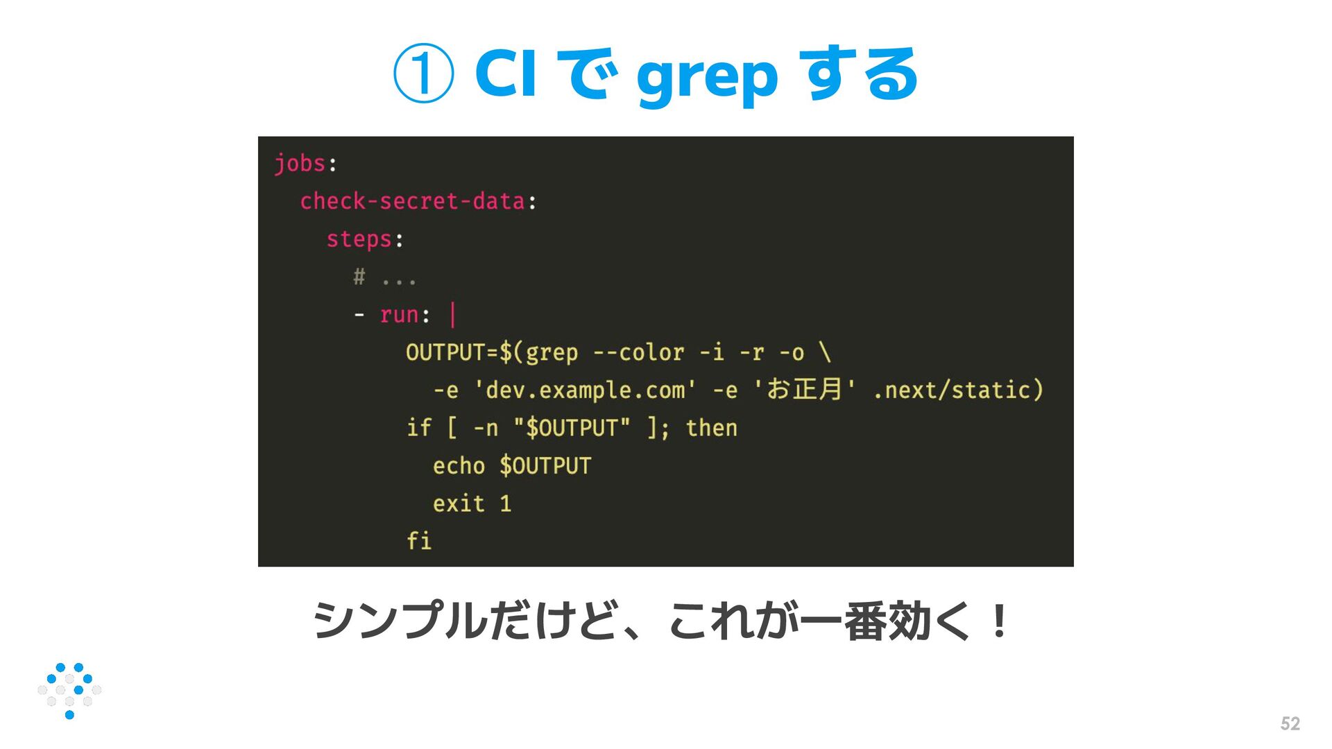 52 ① CI で grep する シンプルだけど、これが一番効く!