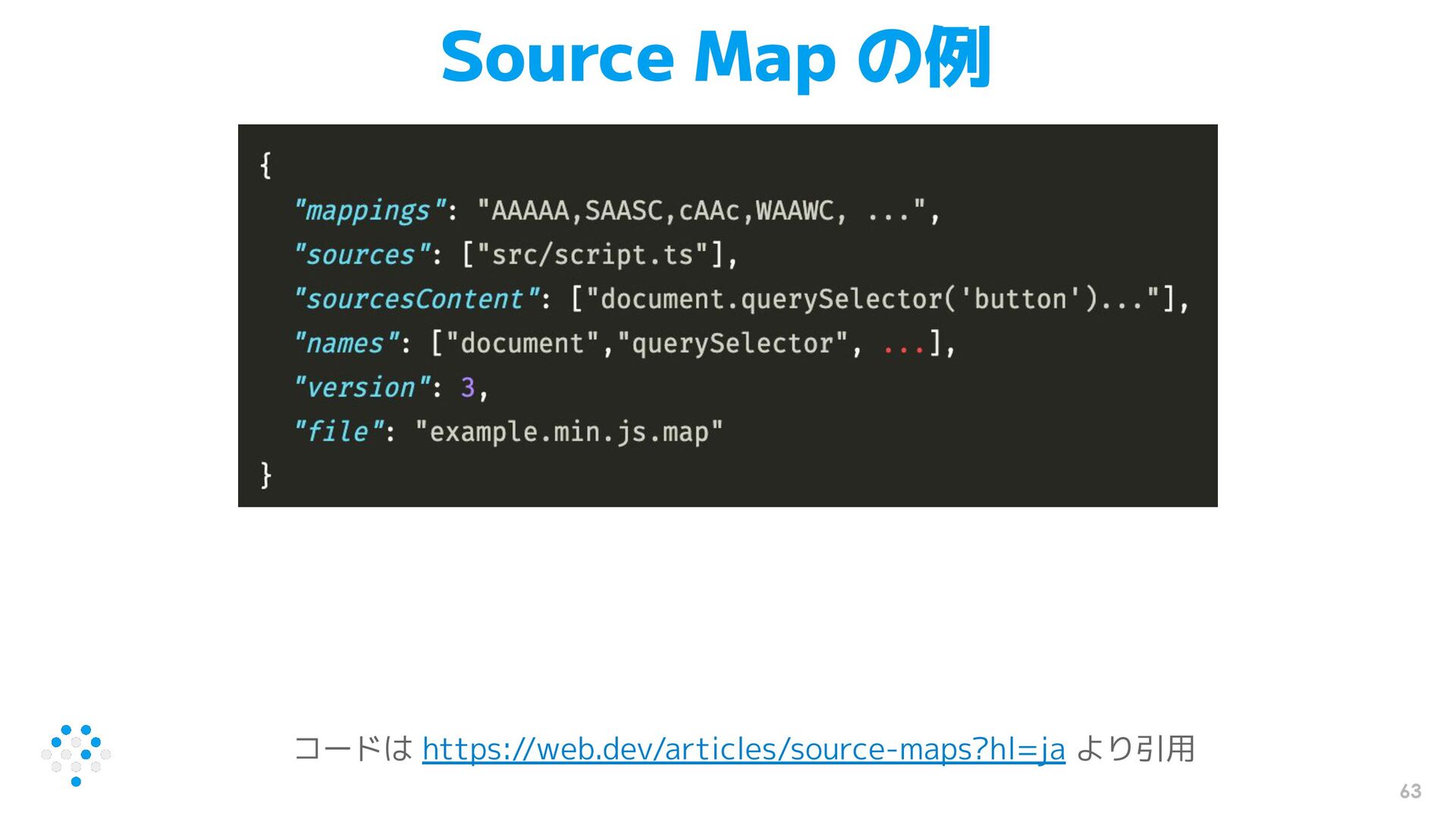 63 Source Map の例 コードは https://web.dev/articles/source-maps?hl=ja より引用