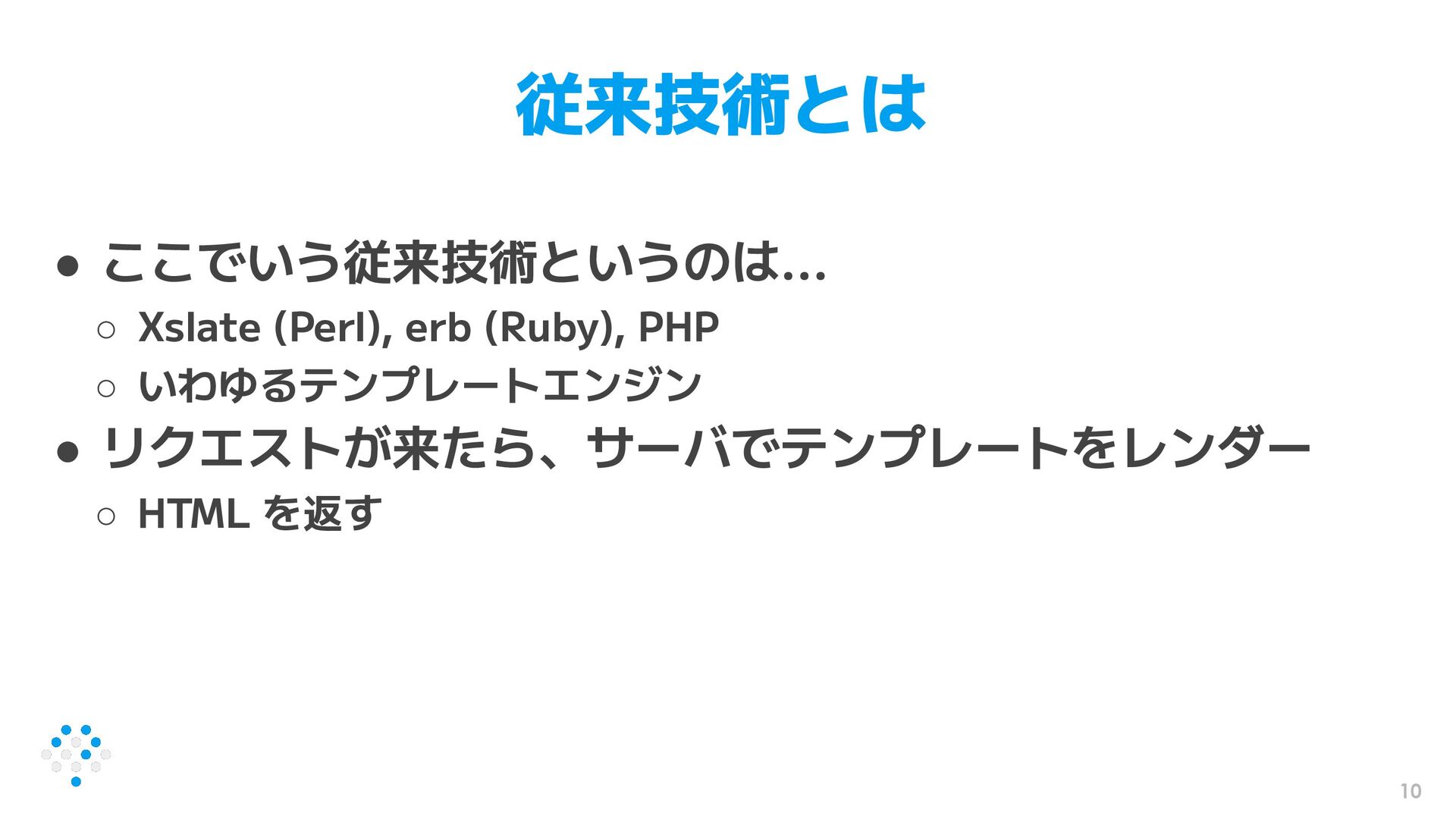 10 従来技術とは • ここでいう従来技術というのは... ◦ Xslate (Perl), erb (Ruby), PHP
