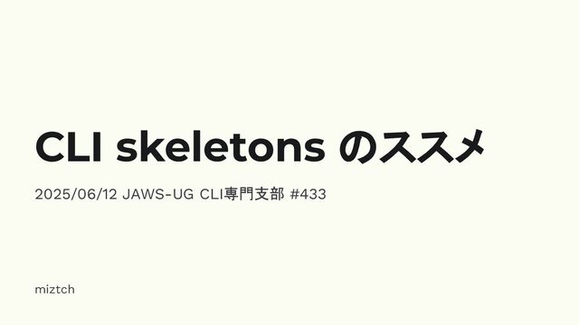 CLI skeletons のススメ 2025/06/12 JAWS-UG CLI専門支部 #433 miztch