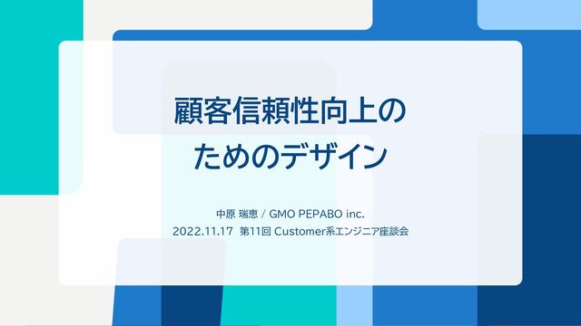 2022.11.17開催『第11回 Customer系エンジニア座談会(https://customer-x-engineer.connpass.com/event/264600/ )でのLTスライドです。 目次 ・顧客信頼性におけるデザインの役割 ・顧客信頼性向上のためのデザイン事例