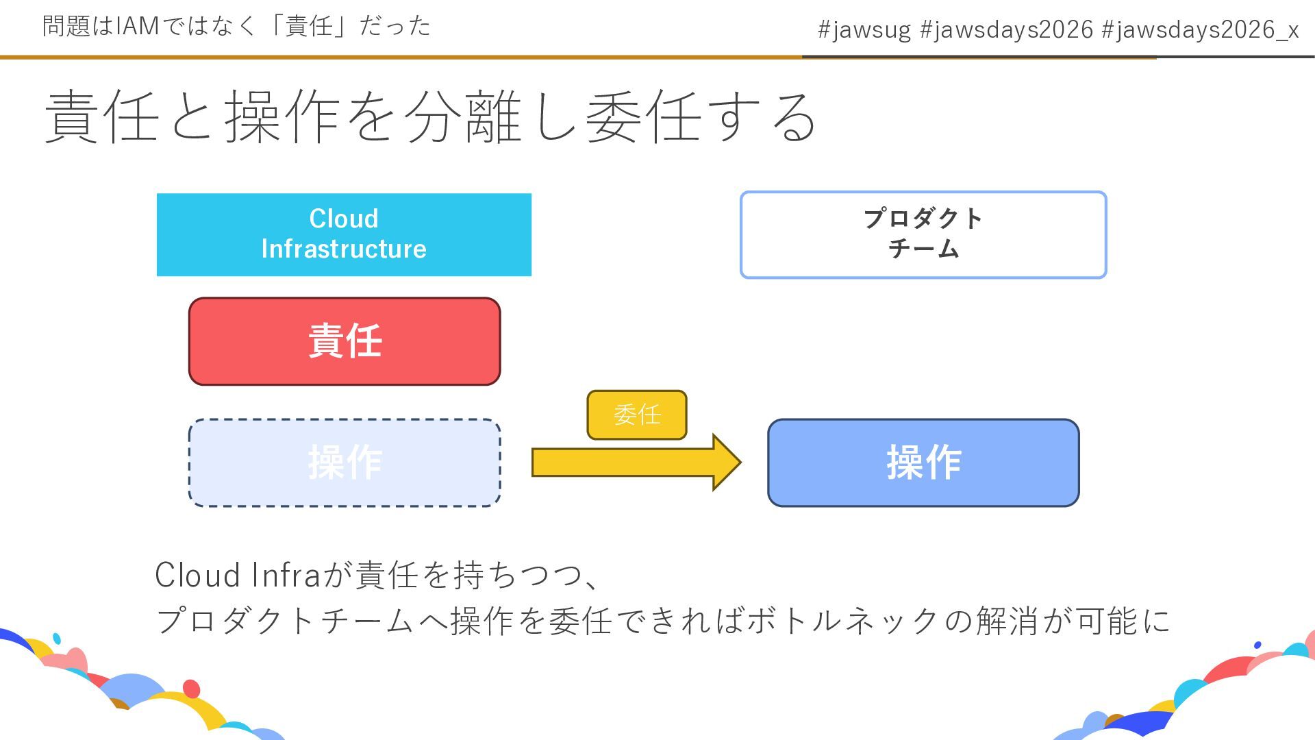 5. #jawsug #jawsdays2026 #jawsdays2026_x IAMは誰の責任か? 問題はIAMではなく「責任」だった Cloud Infrastructure (最終責任) 決める /