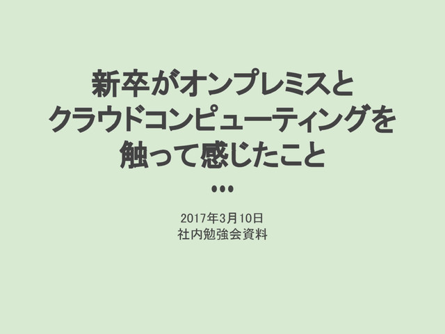 新卒がオンプレミスと クラウドコンピューティングを 触って感じたこと 2017年3月10日 社内勉強会資料