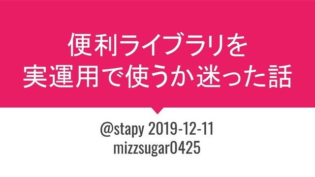 便利ライブラリを 実運用で使うか迷った話 @stapy 2019-12-11 mizzsugar0425