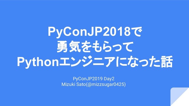 PyConJP2018で 勇気をもらって Pythonエンジニアになった話 PyConJP2019 Day2 Mizuki Sato(@mizzsugar0425)