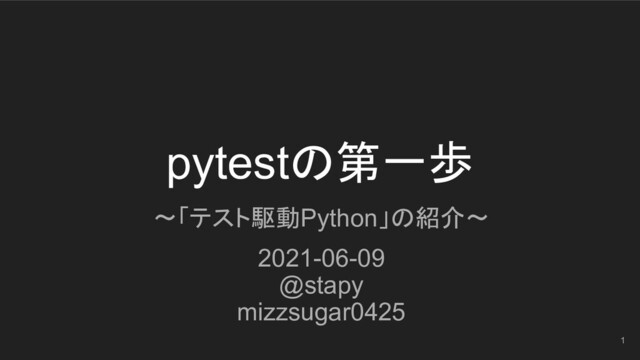 pytestの第一歩 2021-06-09 @stapy mizzsugar0425 〜「テスト駆動Python」の紹介〜 1