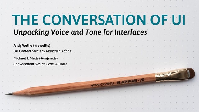 Drawing on their experience writing and designing for digital products, Andy and Michael will help you develop frameworks to explore and document how voice and tone affect the different aspects of your product, brand, website, or service.