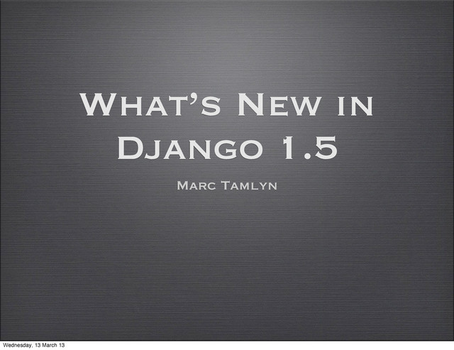 a url name • True, False and None in templates • OPTIONS requests to CBVs • user_login_failed signal • assertXMLEqual() • index_together Wednesday, 13 March 13
