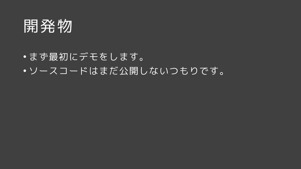 開発物 • まず最初にデモをします。 • ソースコードはまだ公開しないつもりです。