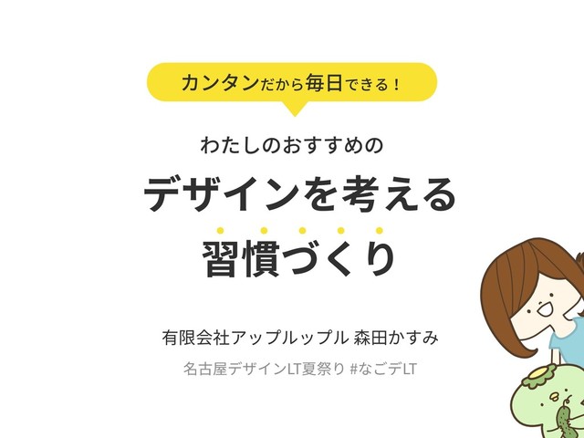 デザインを考える 習慣づくり 有限会社アップルップル 森⽥かすみ 名古屋デザインLT夏祭り #なごデLT カンタンだから毎⽇できる! わたしのおすすめの