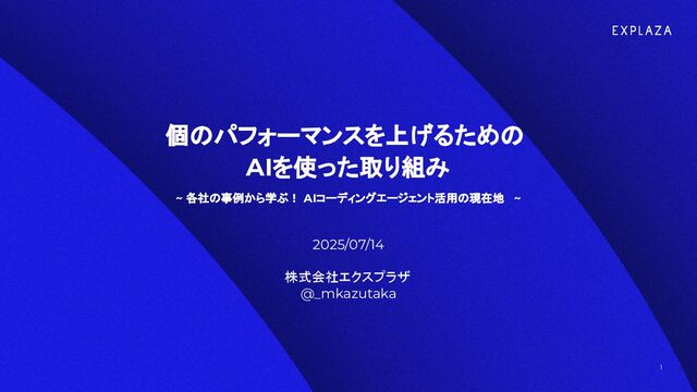 想像を超える未来を実装する AI 革命により、テイラーメードされたデジタルエージェントが、 私たちの暮らしを変えていきます。 その変革を "人びとの新たな可能性 " へと転換することが、 私たちの使命です。 強い好奇心を胸に、より速く、粘り強く挑戦し、想像を超える価値を 産み出す。 ほとばしる情熱で、「人と AI が共創する未来」を実現していきます。 会社名 株式会社エクスプラザ(EXPLAZA, Inc.) 代表者 代表取締役 CEO 高橋 一生 設立 2020年7月3日 所在地 東京都港区六本木4丁目8-5和光ビル 従業員数 50名(業務委託含む) 金融機関 さわやか信用金庫 日本政策金融公庫 主要認定・採択等