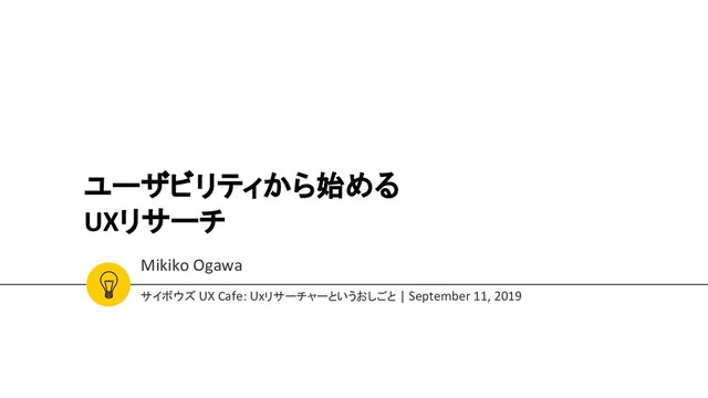 2019 ユーザビリティから始める UXリサーチ Mikiko Ogawa サイボウズ UX Cafe: Uxリサーチャーというおしごと | September 11, 2019