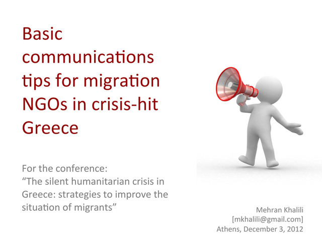Presentation from the conference: “The silent humanitarian crisis in Greece: strategies to improve the situation of migrants” on December 4, 2012 in Athens
