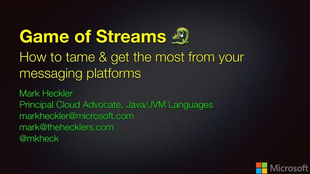Messaging platforms are often used to solve these problems and increase the "ilities", but they don’t come without a few complexities of their own. Come to this session to learn not only how to use open source solutions like Spring Cloud Stream, RabbitMQ, & Apache Kafka to maximize your distributed systems' capabilities while minimizing complexity…but also how to really use them! There be dragons when dealing with messaging platforms; the presenter will show you several ways to tame and harness them for maximum fire, maximum altitude. All examples will be coded live & in real-time!